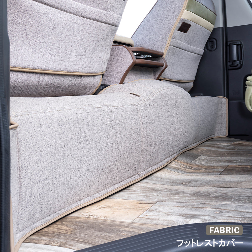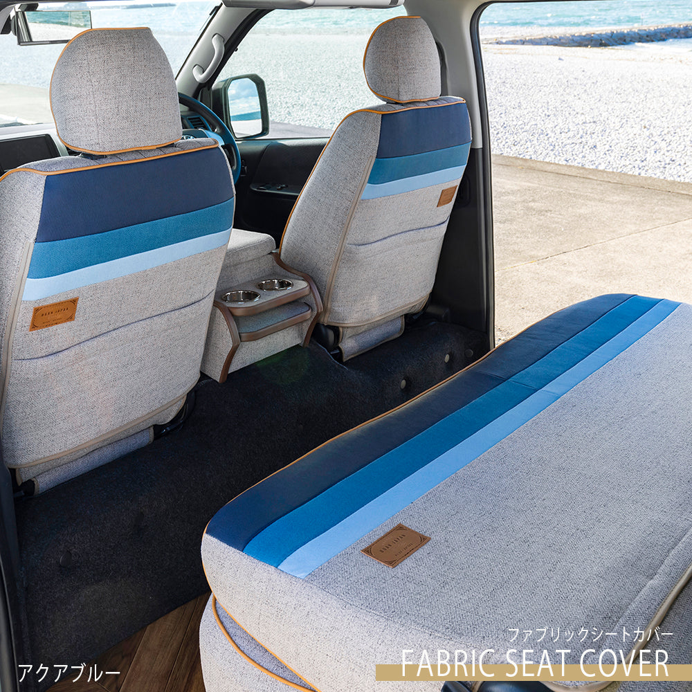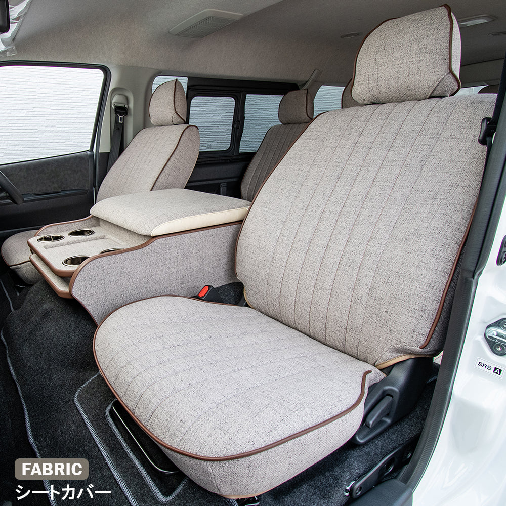 ナチュラルな質感のファブリック生地でまとめた、カバー5点セット。車内インテリアに統一感をもたらし、心地よい空間を演出します。