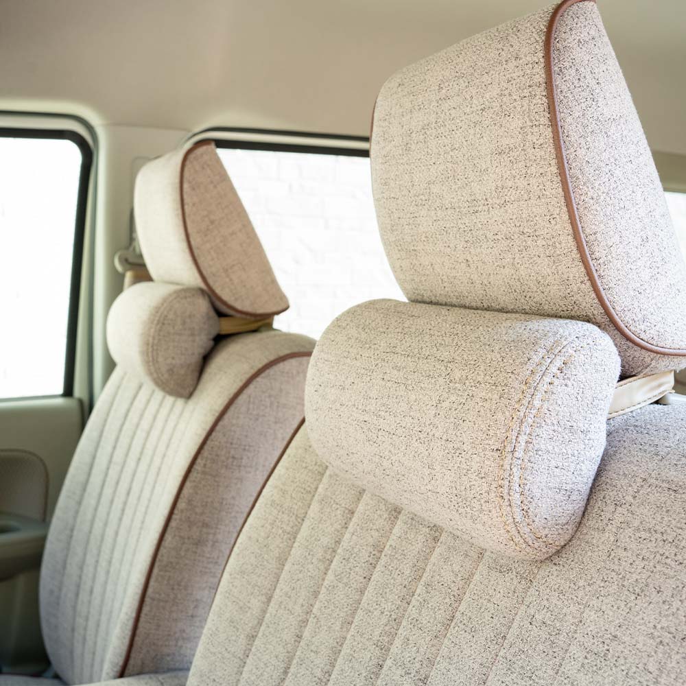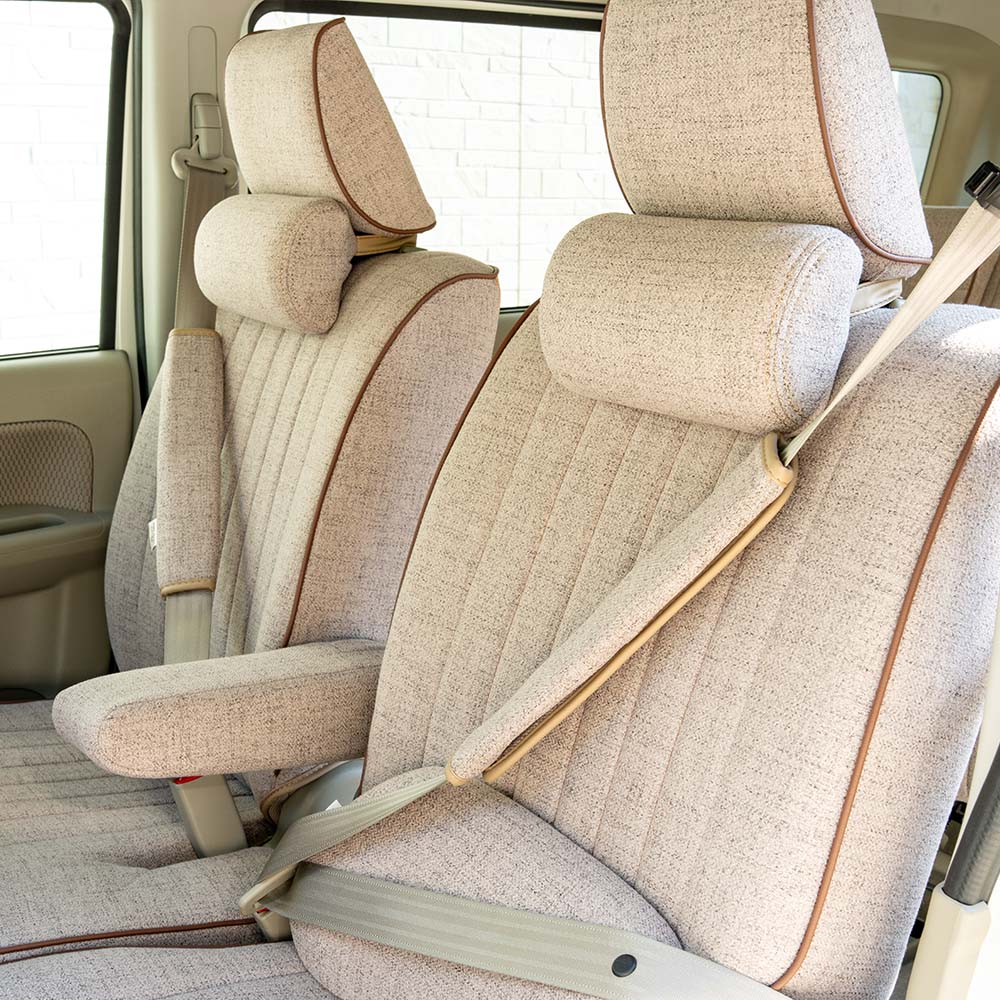 取り付けは、背面のベルトを使ってシートに簡単に装着でき、車内のアクセントとしてもおすすめです。仮眠時の快適さもアップします。