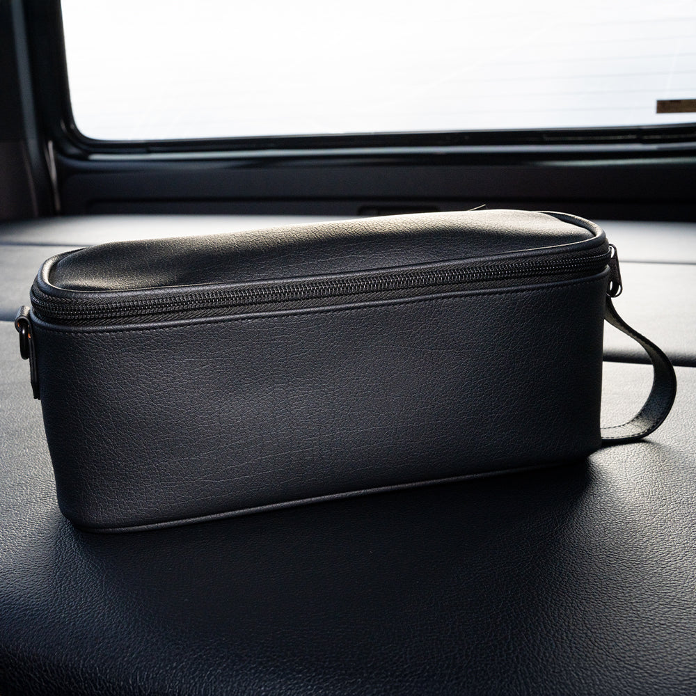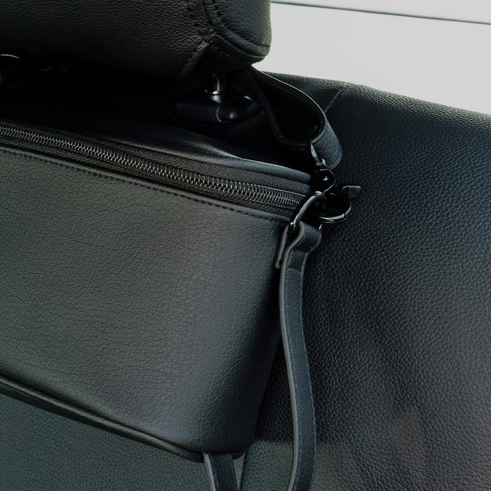 車内の小物をすっきりまとめられる、おしゃれなアイテムホルダー。車のシートに取り付けて使えるのはもちろん、ポシェットのようにパッと外して持ち運びもOK。ベビーカーに掛けたり、お出かけ先でも気軽に使える便利なアイテムです。